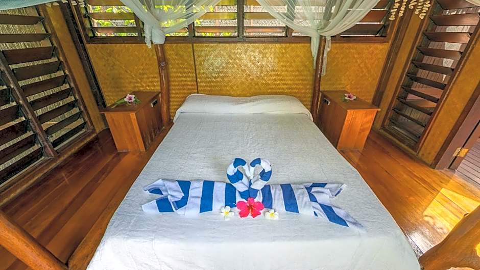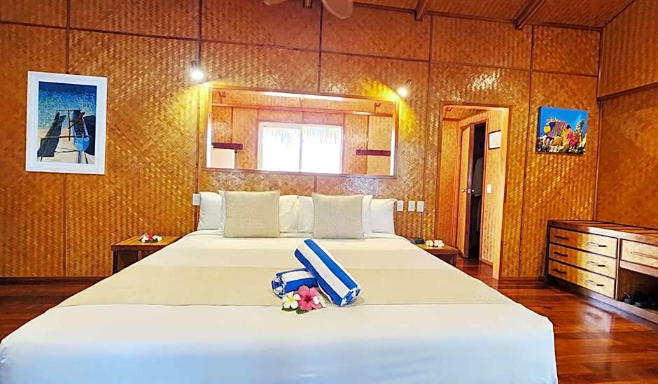 Located directly on the beach, these bungalows look out towards Aitutaki Lagoon and the main island. Featuring Polynesian-style outdoor shower, King size bed, in-room WiFi access, satellite flat screen TV, radio alarm clock, refrigerator, coffee/tea making facilities, hairdryer and cotton bathrobes, the beachfront bungalows also include their own private balcony. Please note that the price is based on 2 guests. Maximum occupancy is 3 (see Hotel Policies).